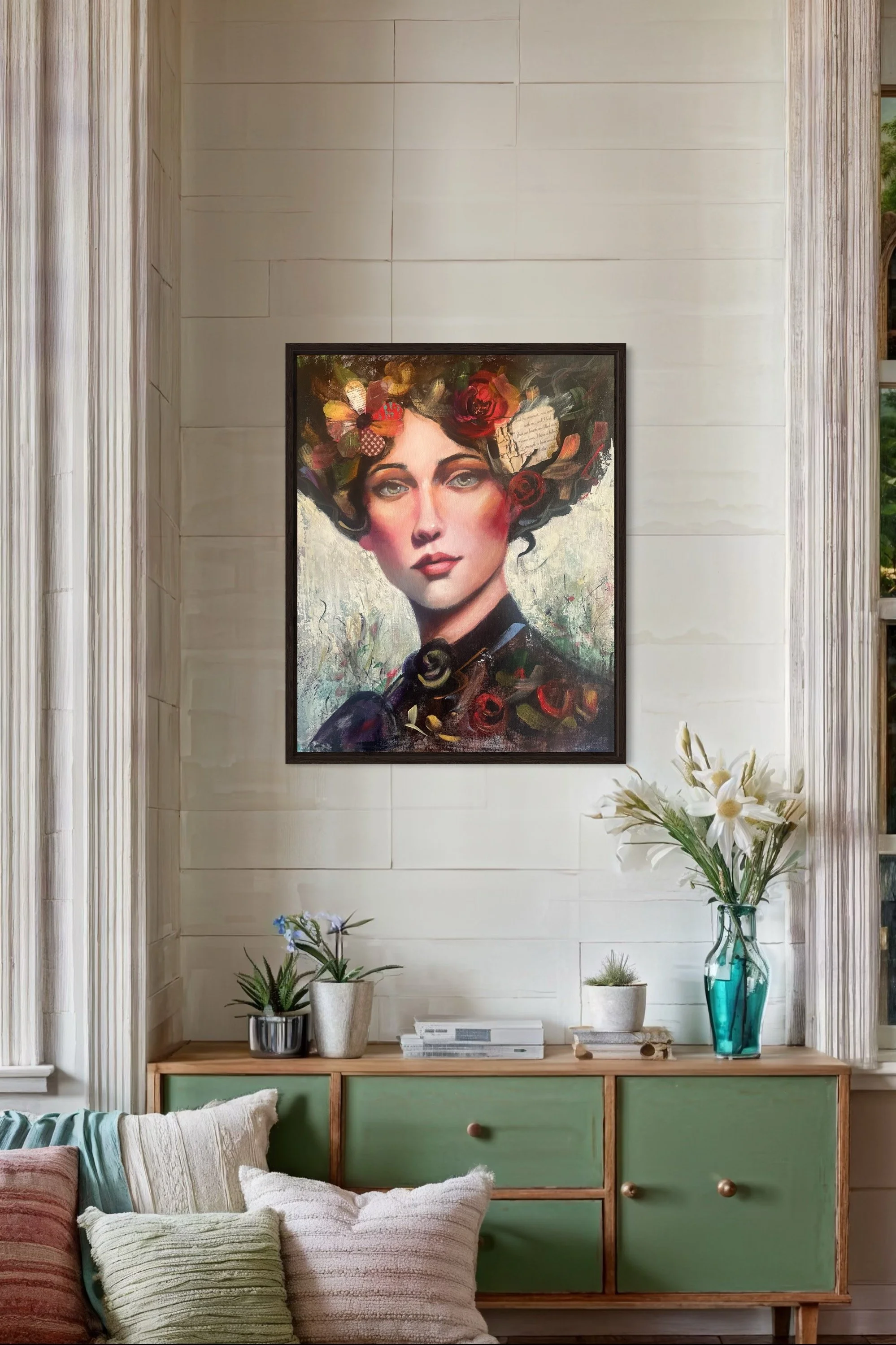As a mixed media artist, I love to create playful mixed media portraits where I interweave abstract story telling elements with realism to convey kindness, warmth, and a blend of strength and vulnerability.