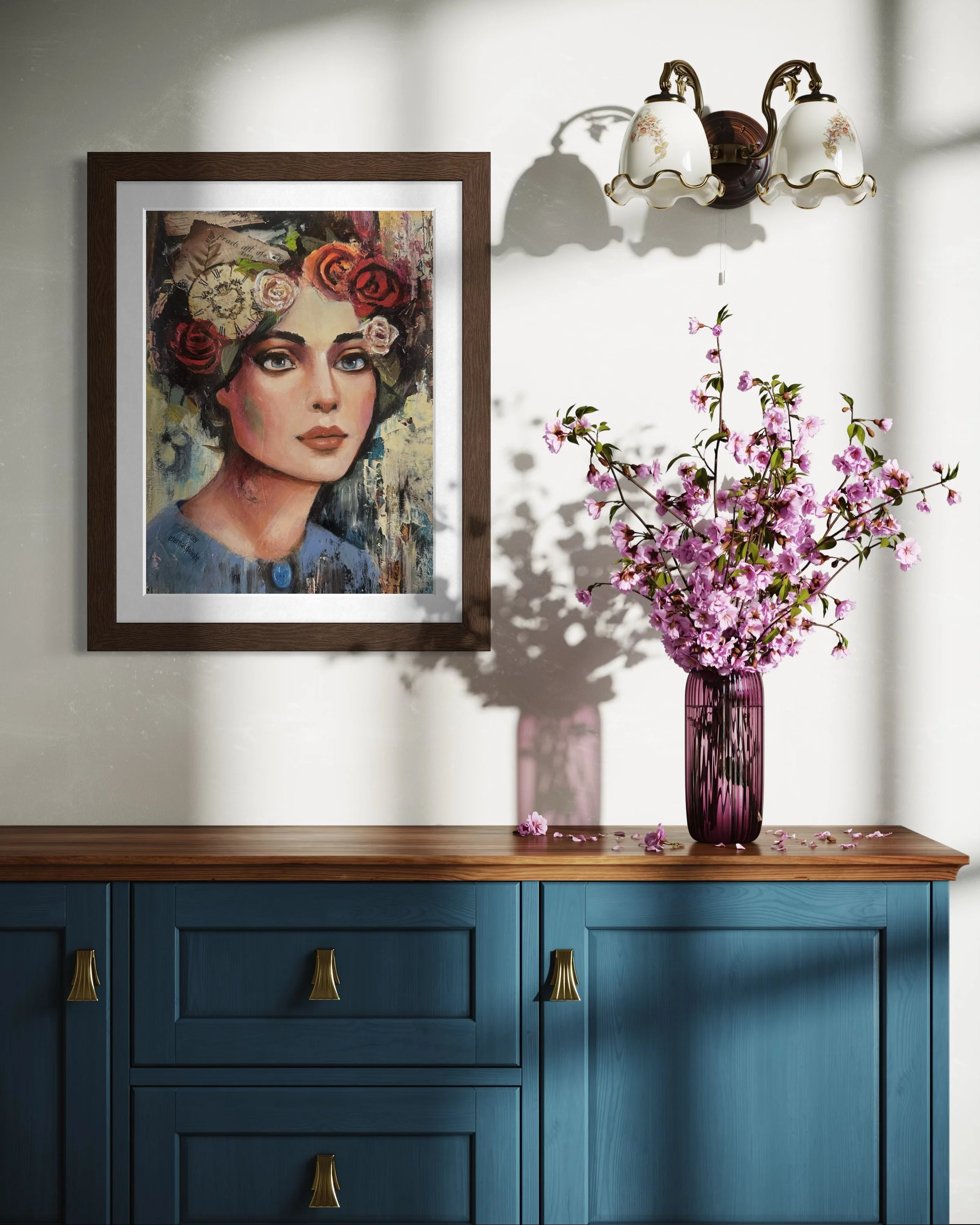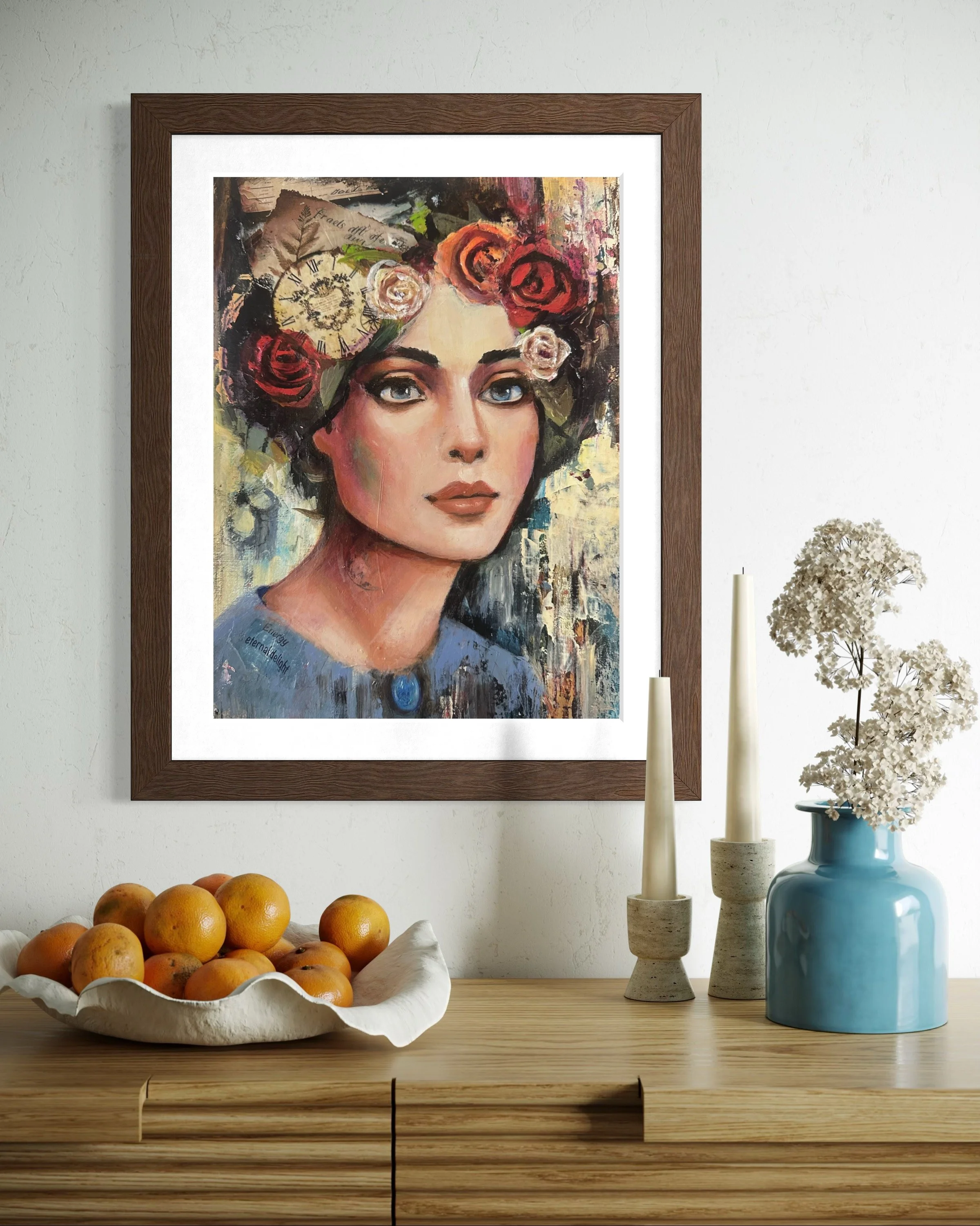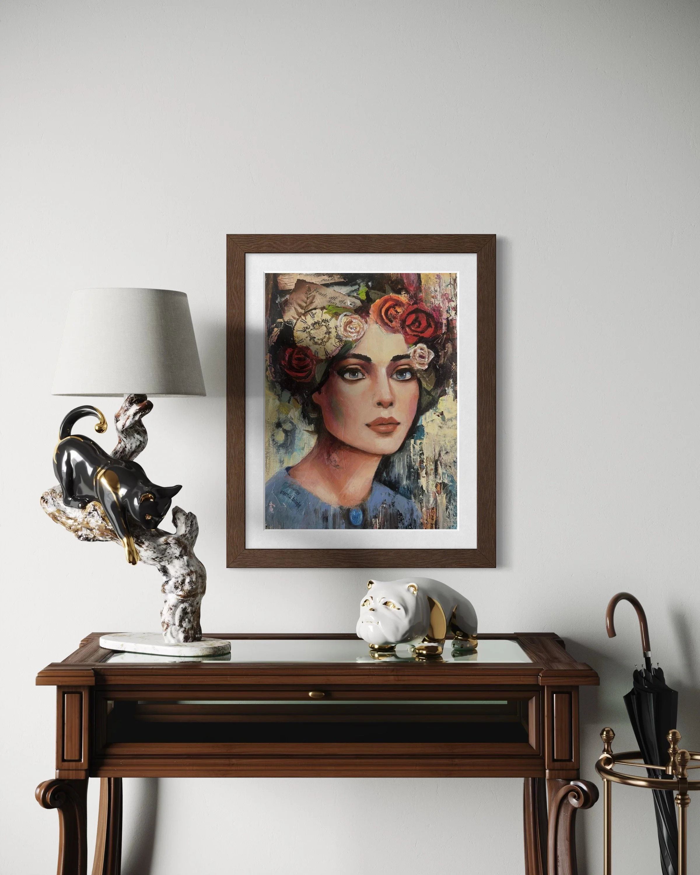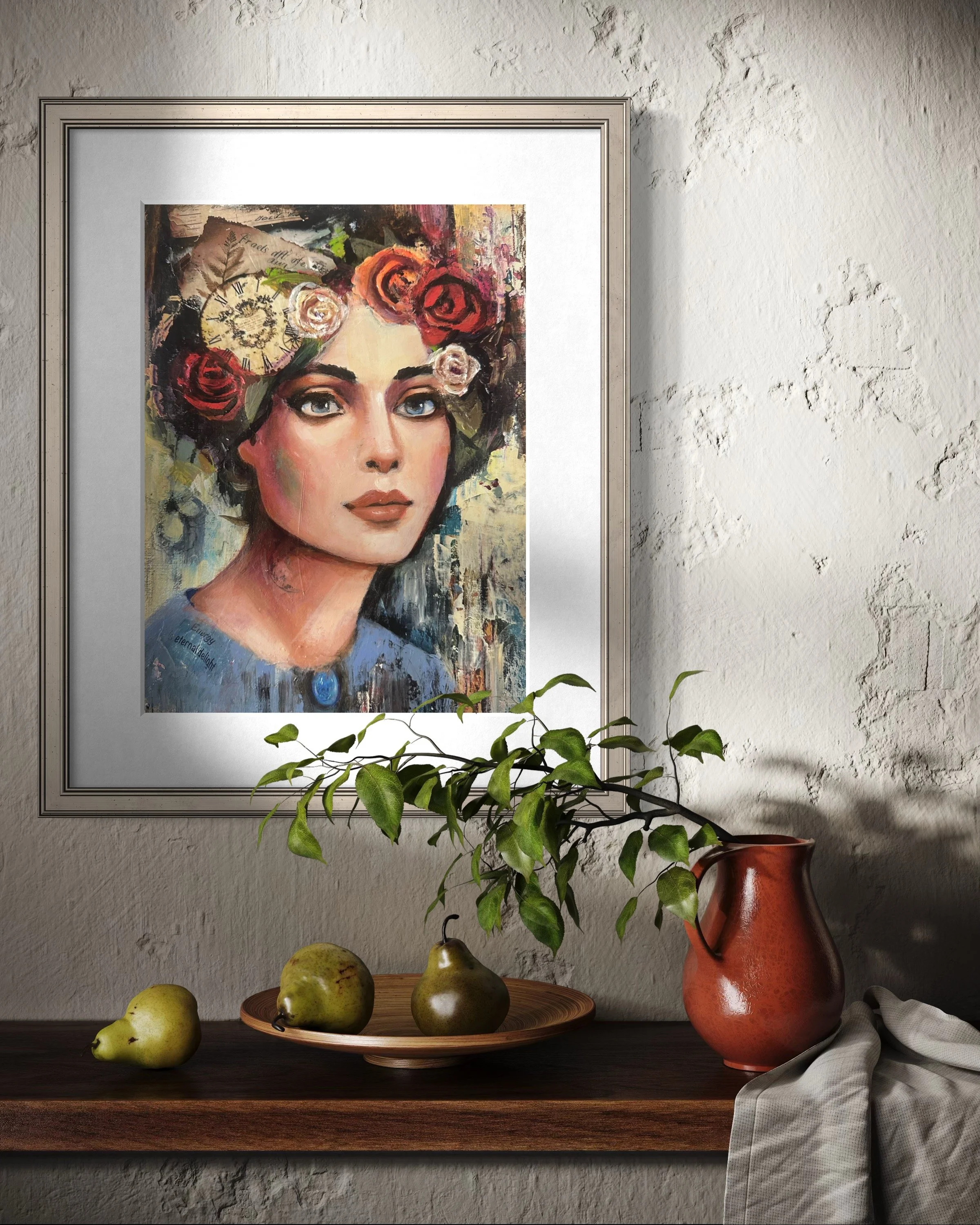 This one-of-a-kind artwork is perfect for collectors who appreciate expressive, layered paintings that tell a story. Add a touch of magic and timeless beauty to your home or office with this captivating portrait.